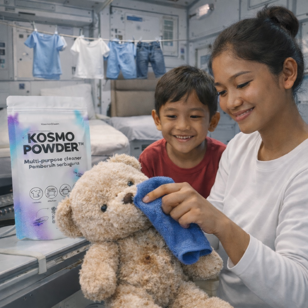 Saya mencuci baju anak dengan Kosmo Powder, rasanya aman dan efektif! Bahkan saya pakai juga untuk membersihkan mainan!